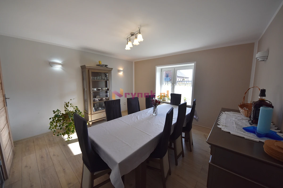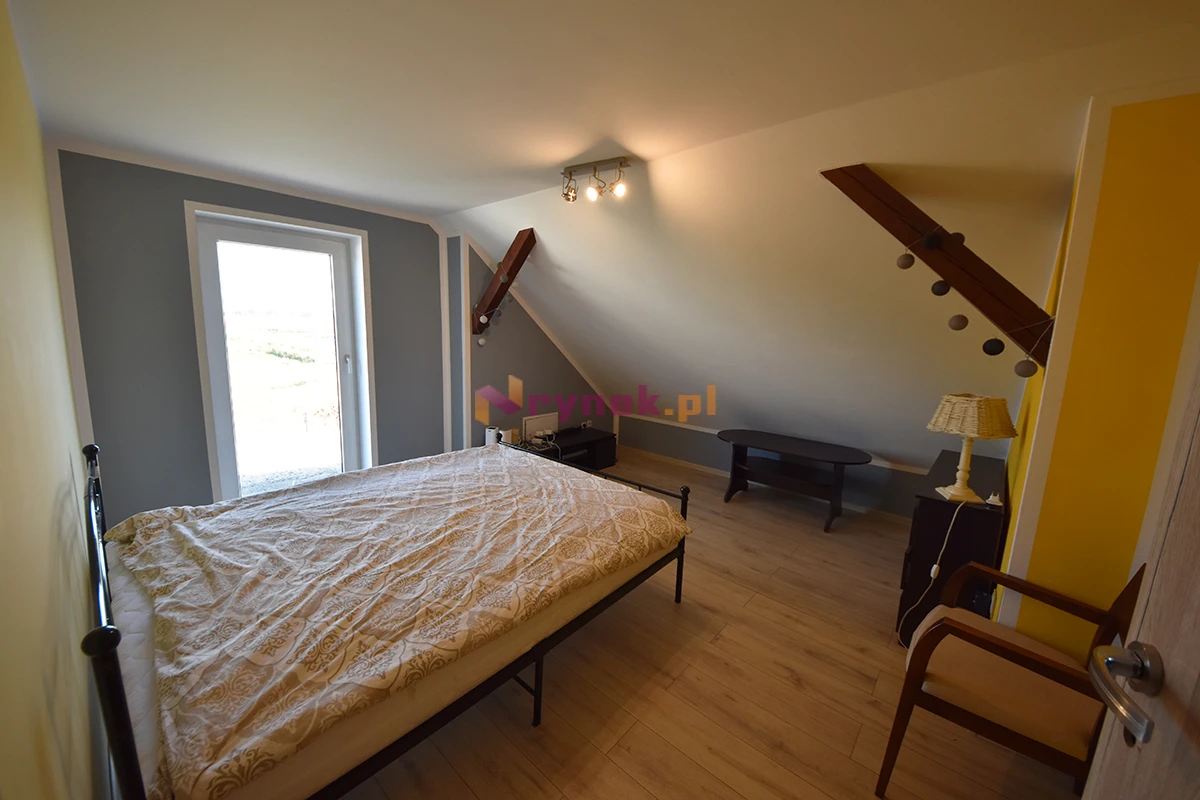 Obok budynku mieszkalnego na działce znajduje się duży budynek gospodarczy o pow. ok. 90 m², w którym urządzono w pełni wyremontowaną kawalerkę z łazienką o pow. ok. 35 m², pomieszczenie gospodarcze oraz kotłownię z pompą ciepła, buforem i zasobnikiem ciepłej wody. Na dachu budynku z obu stron zamontowana jest instalacja fotowoltaiczna.