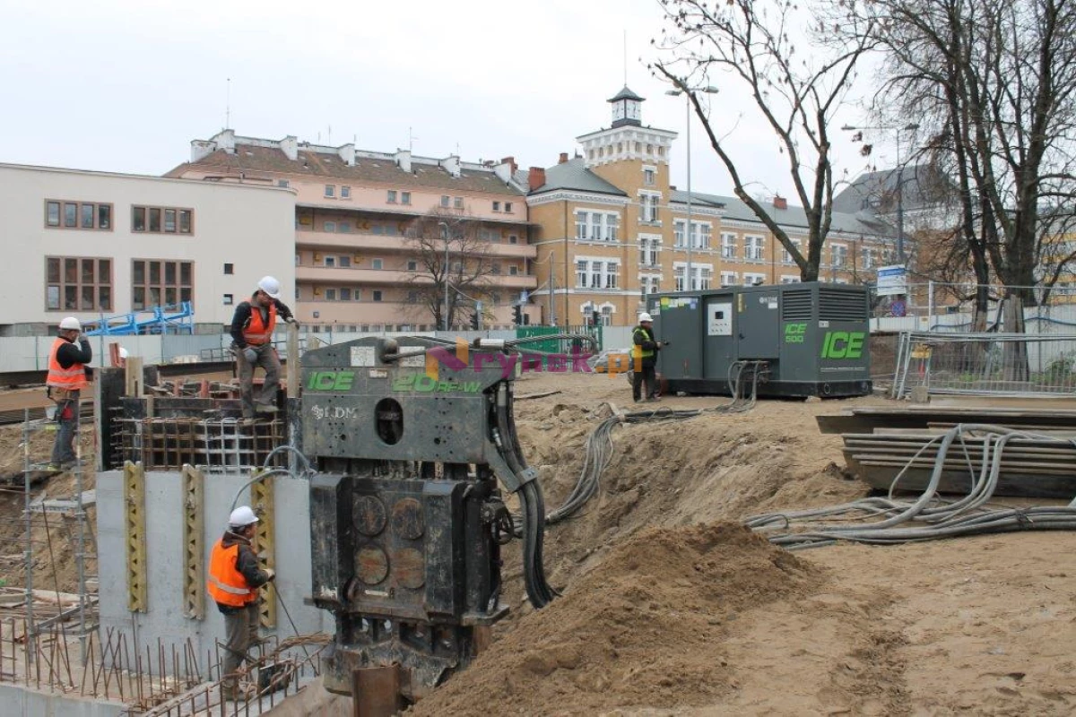 Używany wibromłot ICE 20 RFW wysokiej częstotliwości wraz ze zmiennym momentem mimośrodowym w komplecie z zasilaczem ICE 500 i uniwersalnym zaciskiem ICE 150 - rok produkcji 2012. Do pracy na dźwigu lub palownicy.