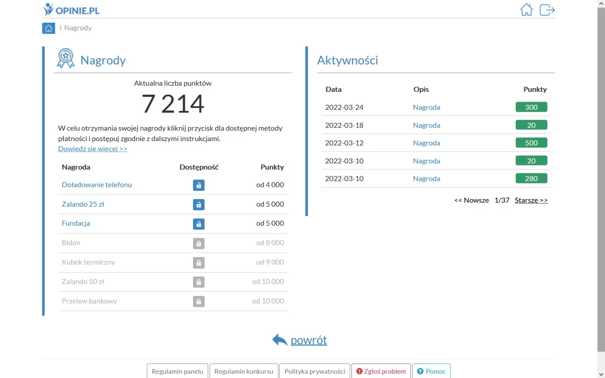 Zdobyte punkty możemy w łatwy sposób wymienić na nagrody: